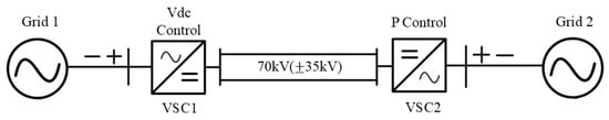 As a practical example, South Korea’s ±35 kV MVDC station is undergoing demonstration research as part of a national project to verify the effectiveness of MVDC technology. This system, located in Naju, is designed with a two-terminal (Point-to-Point) configuration, as illustrated in Figure 1 [12]. This project focuses on integrating renewable energy sources, such as wind and solar power, into the national grid. Furthermore, MVDC systems can efficiently transmit power over medium distances while minimizing transmission losses. Furthermore, MVDC technology enhances grid reliability and supports the transition toward sustainable energy solutions. Such practical applications highlight the importance of MVDC systems in modern energy infrastructure and their role in shaping the future energy landscape [13].