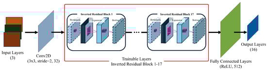 To further clarify the architectural modifications of the CNN model, Figure 8 presents the structural diagram of the adapted MobileNetV2 configuration. This diagram highlights the key adjustments made to the input layer and the fully connected layer, ensuring compatibility with the fault diagnosis model.