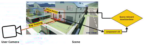 Accurate visualization of urban infrastructure is crucial for informed decision making and effective city management. To support this, our objective is to develop a platform that can visualize each component of houses and buildings, along with associated data. Detailed information for house components is seamlessly transferred from Revit files into Datasmith format and stored as a file, which Unreal Engine recognizes as for the respective objects. We implement ray tracing from the user’s camera to the mouse collision point to detect which object the user clicks on and retrieve the corresponding component’s ID. Once the component’s ID is obtained, it is used to query all relevant data, which are then displayed on a custom-designed widget on the screen. This process is illustrated in Figure 7.