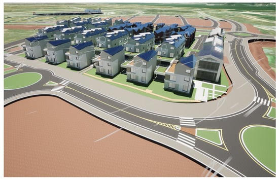 Three-dimensional houses and buildings visualized in Unreal Engine with DataSmith support.