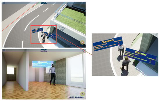 Thermal comfort in the platform is also displayed as a board for each character. This board provides the detailed information required to compute the thermal sensation vote for each character, including factors such as activity level, clothing, weight, and height. The thermal sensation vote is predicted by the thermal comfort model and transferred to the platform via FastAPI, where it is visualized on the board. This feature offers city managers valuable insights into individual thermal comfort levels, enabling more informed decisions regarding HVAC system design to optimize both comfort and energy efficiency. Some examples are illustrated in Figure 14.