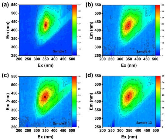 3.2.1. Three-Dimensional Fluorescence Spectra