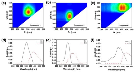 3.2.2. PARAFAC Results for 3D Fluorescence Spectroscopy