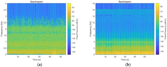 Icing vs. normal time—frequency diagrams. (a) Ice time—frequency diagrams; (b) normal time—frequency diagrams.