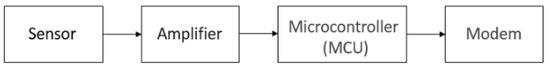 The electronic unit of information processing and transmission consists of an amplifier, microcontroller, and ZigBee modem, which performs data transfer. Figure 4 shows the schematic diagram of the electronic block of information processing and transmission.
