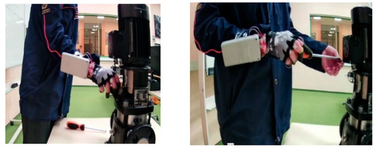Industrial equipment and its technical condition play essential key roles in the operation of any industrial enterprise [1,2]. In the mining, metallurgical, oil and gas, and electric power industries, particular emphasis is placed on the management of equipment maintenance processes [3,4]. Digital technologies play a significant role in this context, with various sensors [5,6], machine vision [7,8], special communication channels [9,10], predictive analytics systems [11,12], and equipment technical resource assessment [13,14]. A crucial aspect in the utilisation of these technologies is the evaluation of their effectiveness and the suitability of their application in specific scenarios [15,16]. Many tasks are accomplished in maintenance and repair management. The following aspects are of the greatest importance: the identification of equipment maintenance and repair actions in real time [17,18], the comparison of personnel actions with the so-called equipment repair map [19], the evaluation of the length of each action [20,21], and the registration of downtime in maintenance and repair areas [22,23], etc. At present, just a few of these tasks have been automated. Meanwhile, studies such as [24,25] show that factors related to work and its organization significantly influence the causes of human errors, as do environmental, individual, and technical factors. A number of researchers are committed to the automation of organisational support and the establishment of flexible policies for the maintenance and repair of equipment, with the capacity to adapt to changing conditions [26,27]. As an example, in the work in [28], an RL (reinforcement learning)-based agent is developed to autonomously determine the optimal time to perform corrective or preventive maintenance. The other research utilises video and photographic recording of the repair process. This study [29] presents an approach for detecting and assessing the wear of wind turbine components (carbon brushes) based on brush image analysis. A huge volume of work covers the use of wearable devices in maintenance. Wearable devices include different sensors, augmented reality glasses, handheld scanners, and others [30,31]. Also, this paper [32] shows both the use of augmented reality technology in performing repairs and a solution to one of the technology’s most pressing issues; namely, the creation of automated maintenance instructions. One study [33] presents the combined use of video and wearable sensors attached to the athlete’s body. The authors made it possible to collect real-time data on the movement of athletes and to provide feedback for the training process. This study is indirectly related to current research; however, the video and sensor combination is of particular interest and has the potential to be used for maintenance management. Another group of studies demonstrates the application of wearable devices in industry, in particular, in providing human location, action recognition, and gesture evaluation. As an example, a recent paper reviews the application of smart insoles for such tasks [34], a smart vest [35], and a smart helmet [36]. The work in [37] presents the development of an augmented reality system for training heavy equipment operators for a coal mine in the USA. Specifically, gloves as wearable devices have been extensively researched, with a multimodal action-oriented warning glove being a well-documented application [38]. Furthermore, this work [39] puts forward the concept of utilising a smart glove in combination with a Phalange-based Triboelectric Sensor (PTS) to facilitate the training of an Embodied Artificial Intelligence (EAI) system. This glove uses the Phalange-based Triboelectric Sensor (PTS). It integrates a linkage mechanism with a double-layer electrode design. A vast number of works are focused on the study of the cognitive–psychological state of personnel when using wearable devices [40,41]. In particular, this study [42] evaluates the impact of using wearable devices on an operator performing manual material handling tasks. The paper illustrates that glasses are considered the most impractical, least comfortable, and most effective devices for manual assembly tasks.