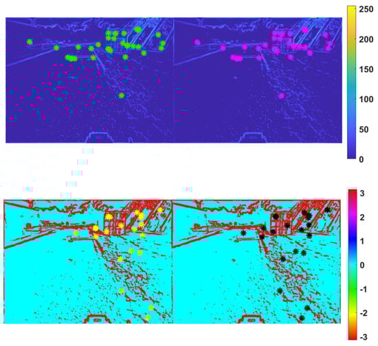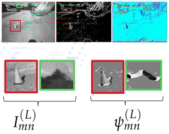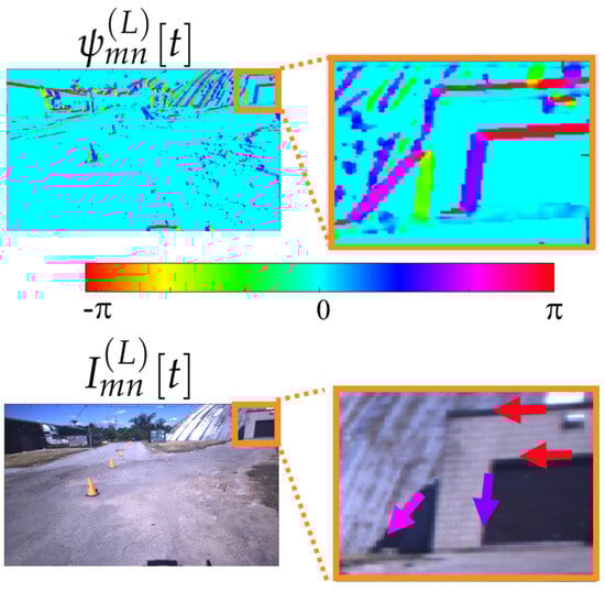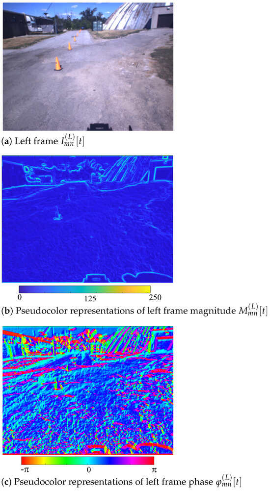 obtained by convolving the luminance of the left and right original images with the impulse response . Therefore, the filtered images are characterized in terms of the modules and phase , . The function [,] returns the magnitude and phase of the filtered image, which are useful for extracting the edges of objects present in the reference scene.