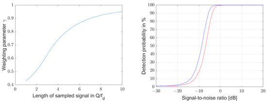 In order to minimize the noise power in the sampled signal, the received signal is limited to the minimum bandwidth of before sampling. If the bandwidth of the signal is lowered below the value given in Equation (17), we call the signal over-sampled. The over-sampled content of the signal contains no additional information, and we can reduce in the following analysis the sampling frequency to half of the bandwidth.