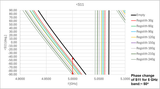 - Measurement of the S11 phase for the shovel with regolith inside after its acquisition.