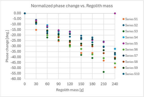Results of the measurements of the reflection coefficient S11 phase for Series S—regolith in the shovel without smoothing (for 5 GHz RF signal frequency).