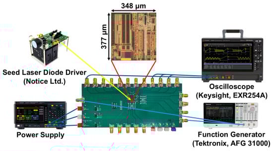 - Yang, C.; Kee, K.; Lee, S.; Jung, H. Implementation of 10 Gb/s 4-Channel VCSELs Driver Chip for Output Stabilization Based on Time Division Sensing Method. J. Korean Inst. Commun. Inf. Sci. 2015, 40, 1347–1353. [Google Scholar]