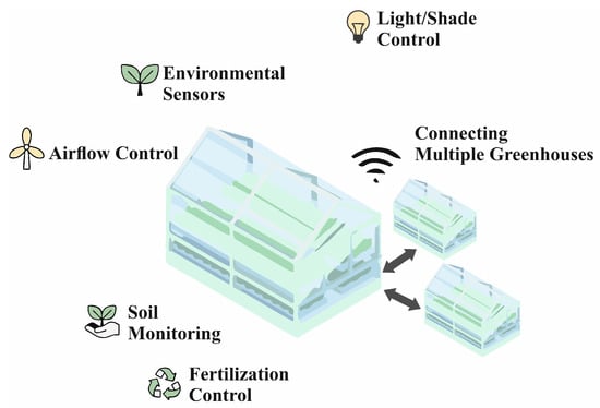 Figure 8. A smart greenhouse can significantly increase its productivity by integrating various sensor and robotic systems in combination with IoT.