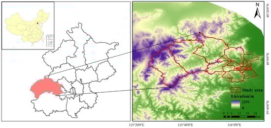 The Mentougou area is located in the western part of Beijing, China, as shown in Figure 1, at longitude 115°25′–116°10′ E and latitude 39°48′–40°10′ N. The total area of the area is 1448.82 km2, and Mentougou is rich in solar energy resources, with an average of about 2470 sunshine hours per annum and an average of 4600–5700 MJ/m2. Mentougou belongs to the ecological conservation and development area, and the development of green energy and renewable energy is recommended according to the functional position of the Mentougou district. Therefore, the Mentougou District of Beijing was selected as the study area for this study to assess the potential for multifunctional retrofitting of green roofs and PV roofs on rural roofs.