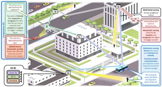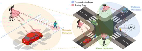 Joint sensing and communication (JSC) holds great promise in increasing both spectrum and energy efficiency with acceptable hardware costs and complexity by sharing infrastructure, resources, and signals between communications and sensing [1,2]. It demonstrates the potential to foster communication-assisted sensing and sensing-assisted communication, thereby enhancing both functions to optimally support emerging applications within the 6G landscape. These applications encompass areas such as intelligent transportation systems, the protection of vulnerable road users (VRUs), traffic and environmental monitoring, and safety in urban scenarios, among others [3,4].