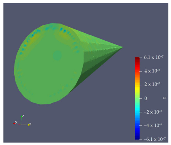 The protective piece consists of a tapered cone-shaped casing with a flat base designed to reduce turbulence in the area near the microphone. The geometry of this casing is not arbitrary; it is optimized to deflect the airflow in the most aerodynamic way possible, thus minimizing the direct impact of the wind on the device’s diaphragm. This design reduces the noise generated when wind directly strikes the microphone, a common issue in audio capture setups in open or moving environments. In tests conducted on turbulence simulations in [33], shown in Figure 4, it has been verified that this structure deflects most of the airflow, allowing for cleaner sound capture.