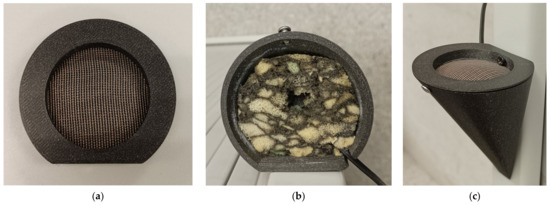 ICECREAM Design: (a) Cover with windproof filter; (b) Interior of the structure filled with absorbent material; (c) Complete piece.