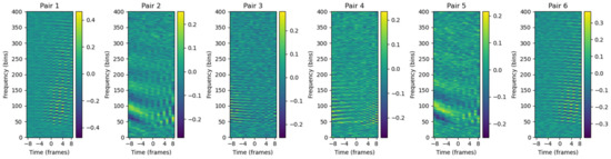 For the detection of a close pass, the temporal information arriving at the four microphones is essential. To achieve this, the Generalized Cross-Correlation with Phase Transform (GCC-PHAT) parameter [41,42] is used between pairs of microphones. This parameter allows the calculation of the phase shift between different microphone pairs and provides information on the relative localization of the sound. The GCC-PHAT is computed for each pair of spectrograms obtained during the analysis of the 4-s segments from each microphone, enabling precise extraction of the temporal information from each pair.