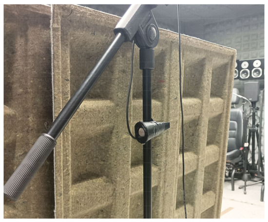 Inside this protective structure, an acoustic absorbent material has been included. This acoustic absorbent not only helps dampen mechanical vibrations that may transfer from the vehicle to the microphone through the casing but also reduces internal resonances that could amplify noise [34]. The choice of this material was made following a series of experimental tests, which showed that the absorbent foam was able to significantly attenuate noise in the 500 Hz and 2500 Hz frequency bands, where wind and vibrations typically have a stronger impact [10,35].