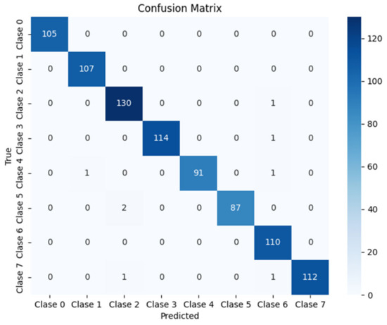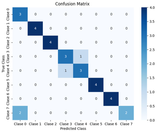 Once the detection phase was validated, the classification of close trajectories was evaluated. For this purpose, 4-s clips covering the entire close trajectory were selected, and the system was allowed to perform the classification. The model achieved an accuracy of 87.1% during this phase, and the corresponding confusion matrix is presented in Figure 28.