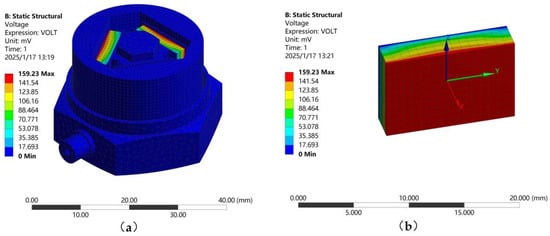 Voltage profile of the sensor. (a) Overall voltage profile of the sensor; (b) Voltage distribution of piezoelectric plate.
