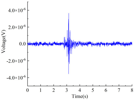 The vibration signal was output through the computer software, and the vibration table generated tiny vibrations after receiving the command. Figure 15 shows the vibration signal detected by the sensor.