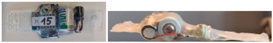 IMU wearables have been used on broilers for the continuous monitoring of activity levels [2,3,4,5], sickness detection [6], poison detection [7], and activity classification [8,9,10]. Other studies have used this type of sensor on laying hens [11,12], but not yet on broilers.