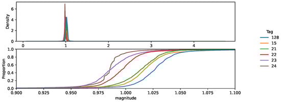 Figure 5 shows the 95% confidence interval for the horizontal and vertical axes for each tag, assuming a Gaussian distribution. It is clear that the magnitude of the noise varies between positions.