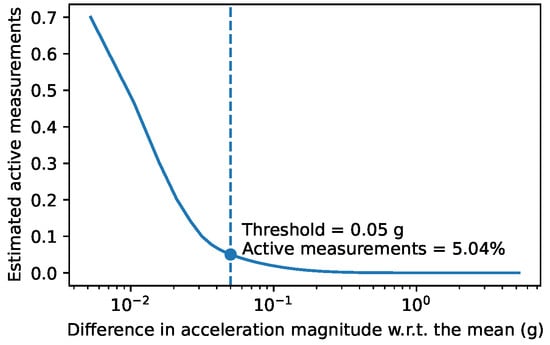In [2], accelerometers were used to estimate the activity level (as the fraction of active time) through the thresholding of the acceleration after noise reduction. The authors observed some differences between chickens; the presence of the accelerometer had a tendency to improve the gait score and increase the frequency of preening. Then, they fit a univariate generalized linear model to estimate the gait score from the activity level and the weight, but only small effects were found.