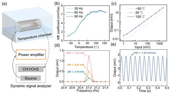 The performance of the ME composite was evaluated over a temperature range of −70 °C to 160 °C. As shown in