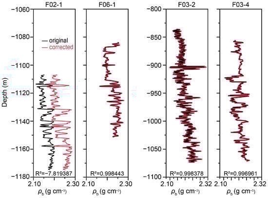 In the pre-correction scenarios, two distinct approaches were adopted for ML training and testing: either including F02-1 in the training set or reserving it for testing. Given that porosity measurements were not readily available for all wells and were instead estimated from density logs using a linear formula, density itself was excluded as an input variable for ML training. Similarly, Vp and AI were also excluded, leaving only the measured logs, comprising AC and GR, as the input features.
