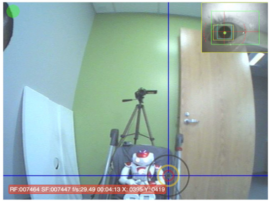 Once the eye gaze video was created in Yarbus, it was then synchronized with the recoding from the lateral view video using ELAN software (ELAN 5.8, Language Archive). The first frame where the globe toy flashed was used to synchronize the eye gaze data and the side view recoding. After the synchronized video file was created, a custom Python software (python 3.9) program identified each time the robot was activated according to the video data’s timeline using the accelerometry data from the wearable sensors and the robot. The timing for each robot activation was confirmed in a frame-by-frame analysis.