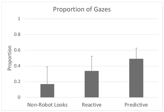 The total number of predictive, reactive, and non-robot looks were divided by the total number of times the infant activated the robot. This was performed to calculate the proportion of responses for each type of gaze.