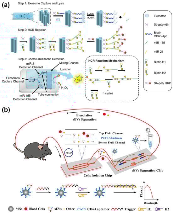 24. Peng, J.; Li, B.; Ma, Z.; Qiu, Z.; Hu, H.; Jiang, Y.; Gao, D. A microfluidic-based chemiluminescence biosensor for sensitive multiplex detection of exosomal microRNAs based on hybridization chain reaction. Talanta 2025, 281, 126838–126845. [Google Scholar] [CrossRef]