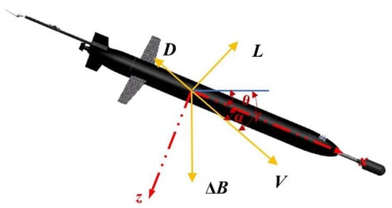 where , , and denote the attack angle, pitch angle, and gliding angle, respectively, , , and represent net buoyancy, lift, and drag.