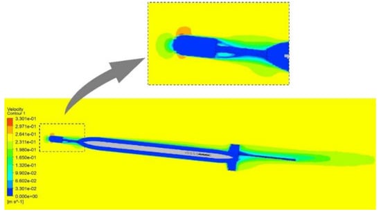 where is the density of seawater, represents the cross-sectional area in the x-axis direction, denotes the gliding velocity of the glider, and and represent the lift coefficient and drag coefficient, respectively, which can be obtained through hydrodynamic shape simulation. In this study, hydrodynamic shape simulation is conducted with Computational Fluid Dynamics (CFD), as shown in Figure 6.