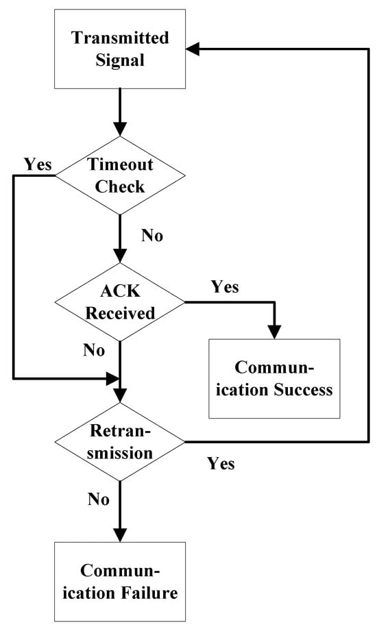 This feedback-based mechanism ensures reliable data transmission by minimizing packet loss and transmission errors through retransmission, even in dynamic and challenging underwater acoustic channel environments. The workflow of the Stop-and-Wait ARQ protocol is illustrated in Figure 11.