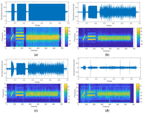 The trial data were processed, and the time-frequency domain oscillogram was recorded. This oscillogram was analyzed to evaluate the underwater glider’s communication performance at various depths and slant ranges. The specific working conditions of the glider’s communication are summarized in Table 2.