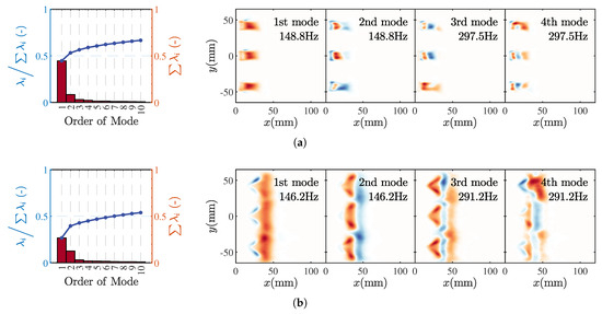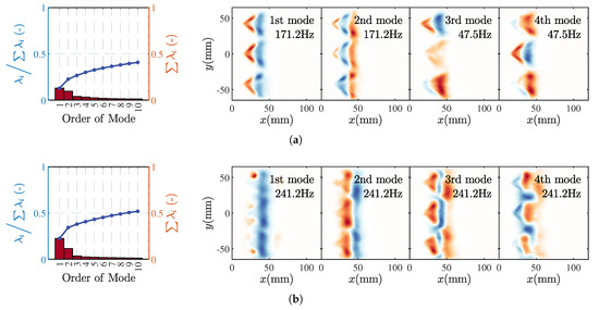 POD results of CH luminescence images for flames in M2 (a) and M3 (b).