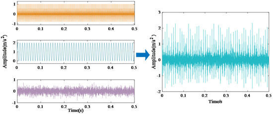 The analog signals in Equation (15) effectively capture the intrinsic fault attributes of rolling bearings, thereby enabling a clear demonstration of the performance of the proposed algorithm. Figure 4 illustrates the time-domain representation of these analog signals utilized in this study.