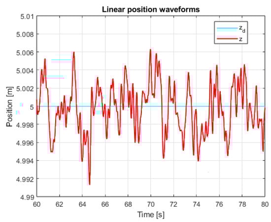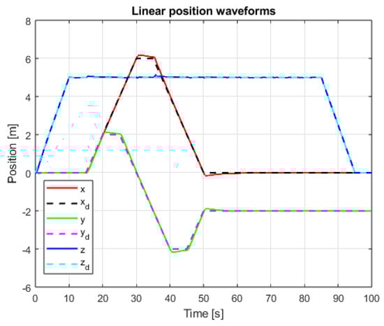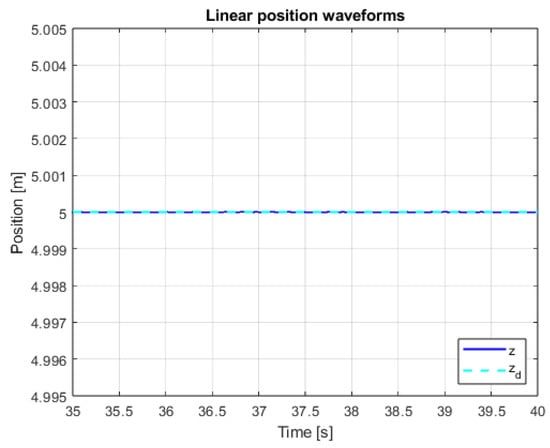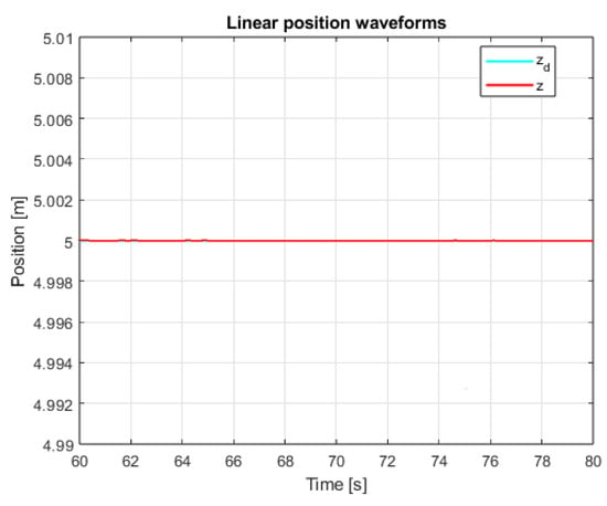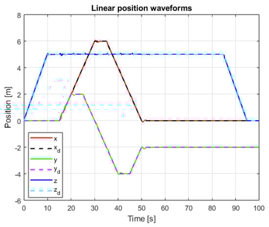 The system is therefore asymptotically stable, and the error should tend to zero. Analogously, to the laws of angular position control, a sliding variable for the linear position in the Z axis has been proposed.