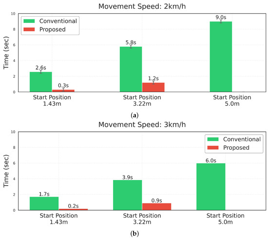 Our experimental results showed that Parallel mode outperforms Ackermann mode in human detection and stability, especially at higher speeds and during turns. This suggests that Parallel mode is well suited for navigating dynamic indoor environments with frequent and unpredictable human presence. Its superior human detection and tracking capabilities make it particularly valuable for indoor applications where safety and reliability are paramount. The implemented time-to-collision prediction system represents a significant advancement in collision detection for mobile robots in human-shared environments. The algorithm’s ability to detect potential collisions and calculate the remaining time until a collision occurs enables greater operational efficiency based on human trajectory patterns. The system demonstrated up to an 83% reduction in unnecessary detection time compared to conventional methods at 3km/h, with improved efficiency particularly evident as the starting position of moving obstacles increased. This enhancement allows the robot to maintain efficient operations while ensuring safety in shared spaces.