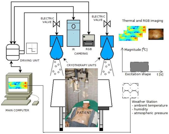 - Nowakowski, A.; Kaczmarek, M.; Rumiński, J.; Hryciuk, M.; Renkielska, A.; Grudziński, J.; Siebert, J.; Jagielak, D.; Rogowski, J.; Roszak, K.; et al. Medical applications of model based dynamic thermography. In Thermosense XIII; SPIE: Orlando, FL, USA, 2001; Volume 4360, pp. 492–503. [Google Scholar]