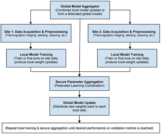 - Song, Y.; Wu, L.; Takahashi, K. Federated Learning for Breast Thermography Classification with Privacy Preservation. IEEE Trans. Inf. Technol. Biomed. 2024; early access. [Google Scholar]