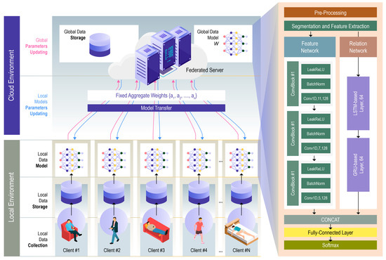 - Xiao, Z.; Xu, X.; Xing, H.; Song, F.; Wang, X.; Zhao, B. A federated learning system with enhanced feature extraction for human activity recognition. Knowl. Based Syst. 2021, 229, 107338. [Google Scholar] [CrossRef]