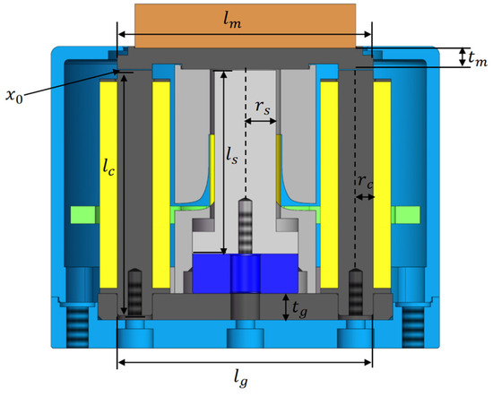 Figure 6 shows the different components’ lengths in the HRAFSM structure, where is the initial working air gap thickness; is the equivalent length of the mover; , , and are the equivalent lengths of different parts of the yokes; and are the radii of the central and left/right yokes, respectively; and and are the thicknesses of the upper and lower yokes, respectively.