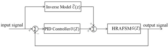 For the high-precision amplitude tracking control of the HRAFSM, we designed the PID + AIC controller. The basic principle of AICs is to use a controller to drive the target system [21]. Moreover, the controller transfer function must be the inverse of that of the target system for the controller output to be consistent with the target system’s input, achieving tracking of the target instruction. Filters play an important role in AICs, acting as independent blocks that take “error” as input and “expectation” as output. During this process, the error signal is used to adjust the filter parameters. We used (i) a linear least mean squares (LMS) adaptive filter to construct the AIC, and (ii) FIR filters to identify and describe the entire system, with a simple and convenient identification process and fewer adjustable weight coefficients.