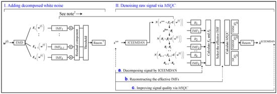 Methodology of modified signal quality coefficient. (Notes: 1 reconstruction; 2 decomposing Gaussian white noise by EMD, and adding it into the raw signal).