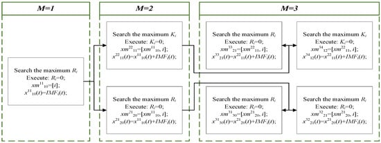 When M = 1, the reconstructed signal  and the record matrix of IMF order  are acquired. When M = 2, the reconstructed signal ,  and the record matrix of IMF order ,  are acquired. When M = 3, the reconstructed signals , ,  and  and the record matrices of IMF orders , ,  and  are acquired.