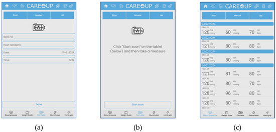 The data from the devices are collected using the Care Plan application. Exemplary screenshots of the application are presented in Figure 3.