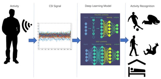 - Ding, J.; Wang, Y. WiFi CSI-Based Human Activity Recognition Using Deep Recurrent Neural Network. IEEE Access 2019, 7, 174257–174269. [Google Scholar] [CrossRef]